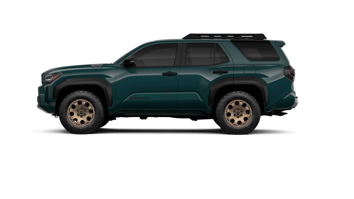 - Black "TOYOTA" heritage grille, door handles and overfenders; color-keyed mirror caps and rear spoiler; black "TRAILHUNTER" and "4RUNNER" badges